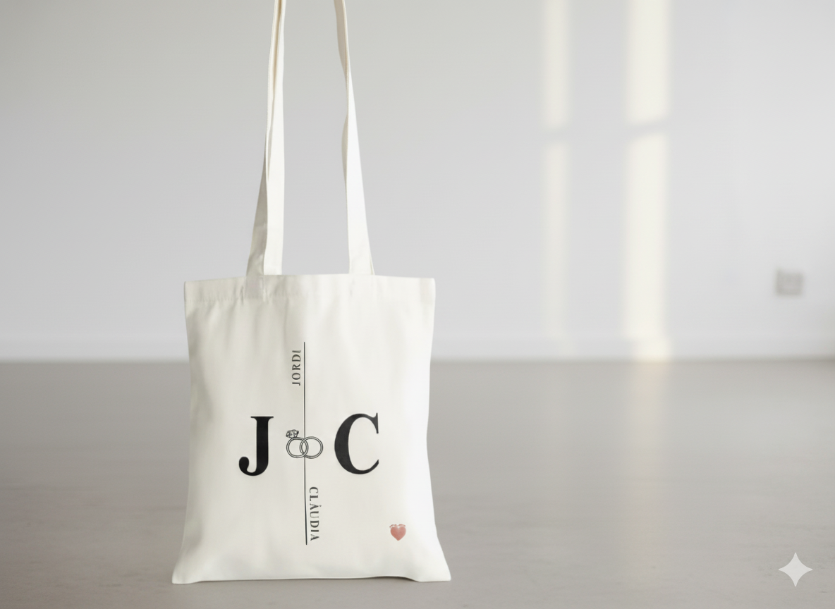 Celebra tu amor con un regalo que tus invitados querrán usar una y otra vez. Nuestra Tote Bag personalizada para boda combina funcionalidad, estilo minimalista y sostenibilidad. Es el recuerdo ideal para agradecer a quienes te acompañan en tu gran día.